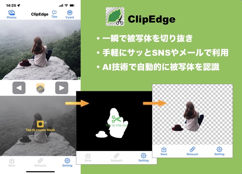 既に、撮影写真から被写体を切り抜く(クリッピング)アプリは多く存在します、しかし画像編集用途なので ちょっと敷居の高いのが多いのも事実。